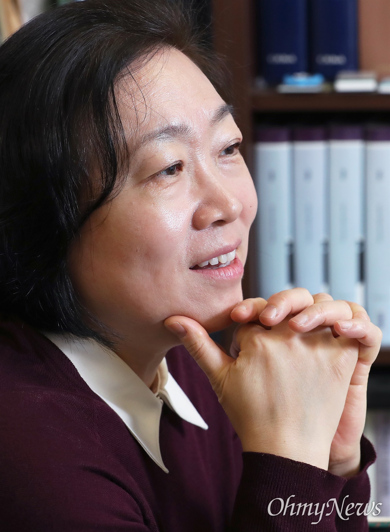 ▲박귀천 이화여대 법학전문대학원 교수가 18일 서울 서대문구 이화여대 법학관 연구실에서 <오마이뉴스>와 인터뷰 하고 있다. ⓒ 남소연