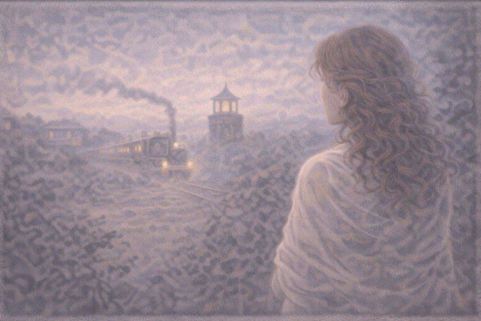 <망루를 바라보며 다시 떠날 결심을 하는 나디아>