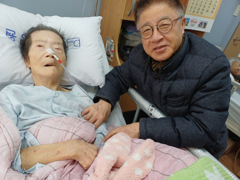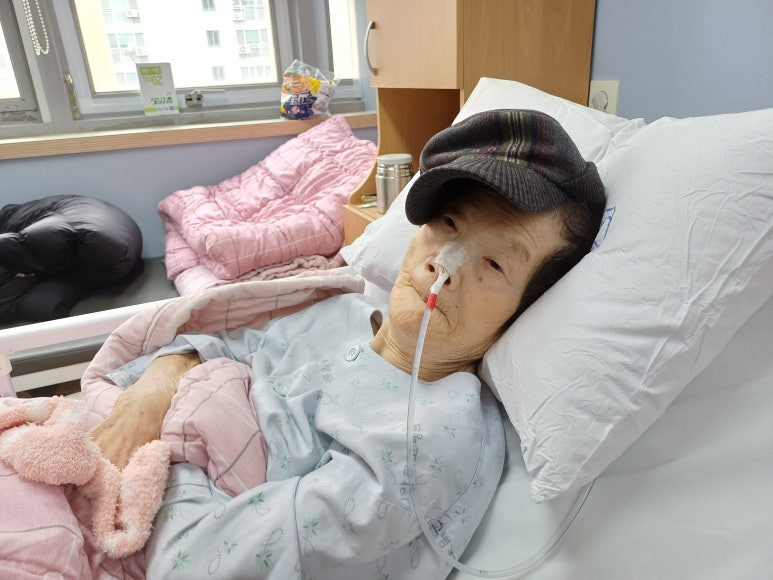 우리 모친이 그 병동 간병인들 사이에는 귀염동이 할매라고 불린다는 말을 전해 듣자 저도 할마시가 꽤 귀엽다는 생각이 새삼 다시 들어 손과 팔을 주물러주며 동생에게 이 순간의 장면을 추억하게 사진 한 두방 찍어달라 부탁했네요. 노친네들은 오늘 괜찮다가도 내일 어찌될 지 모르는 지라 사진 기록은 만날 때마다 동생이 별스럽다 할 정도로 많이 남기려 했습니다. 모친이 낮잠에 빠지려 해 다음 만남을 기약하고 둘이서 병실을 나왔네요.